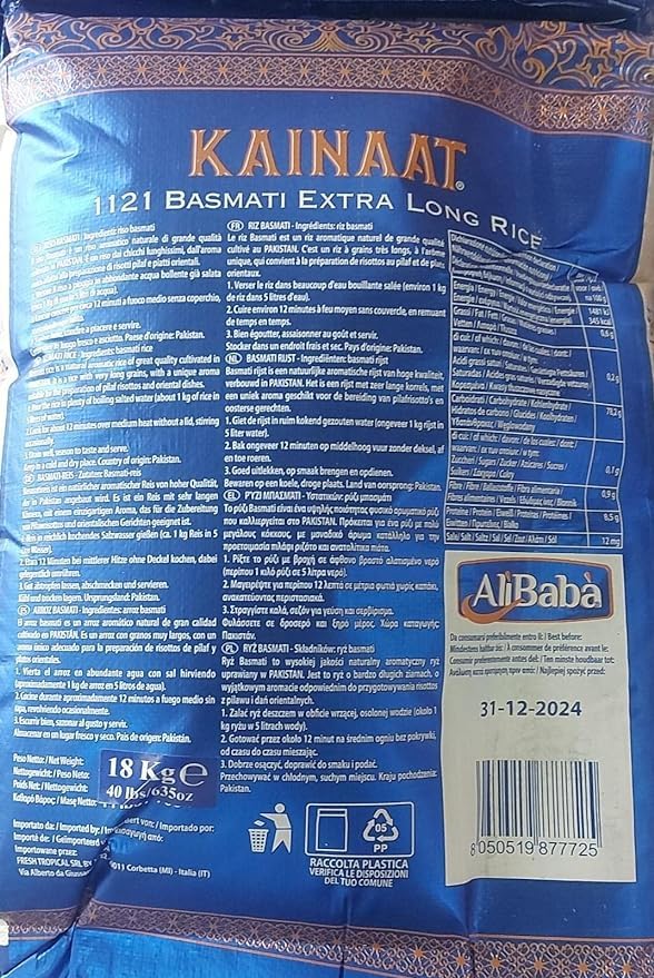 Our Kainat 1121 Aromatic Basmati Extra Long Grain Rice is an exquisite choice for discerning connoisseurs. Made according to traditional craftsmanship in Pakistan, this rice is characterised by its exceptional length and natural aroma. For perfect results, we recommend cooking the rice in plenty of boiling, salted water (about 1 kg of rice in 5 litres of water) and for approx. 12 minutes on medium heat without lid. Stir occasionally. Then drain well, taste and serve as desired. Store the rice in a cool, dry place to maintain its freshness.