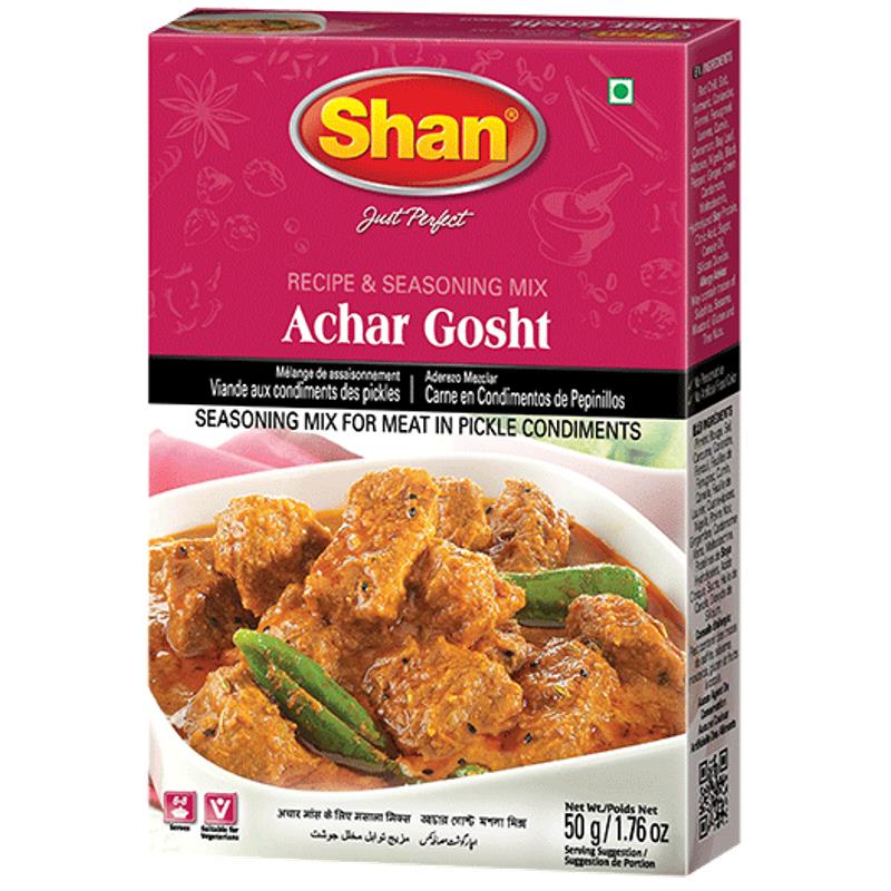 Shan Achar Gosht Masala brings the perfect blend of tangy and spicy flavors to your meat dishes. Specially crafted to recreate the traditional taste of pickled-style curry, it’s ideal for preparing mouthwatering achar gosht with minimal effort.