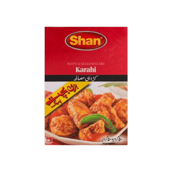 Enhance your cooking experience with SHAN KARAHI MASALA 100GM, a delectable spice blend that will take your taste buds to Pakistan's bustling streets. This original masala mix is painstakingly prepared from a perfect blend of aromatic herbs and powerful spices, guaranteeing that every dish you prepare is bursting with enticing flavors. The deep red color and delicious perfume of this combination offer a wonderful dining experience that will keep your guests coming back for more.